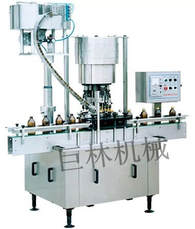 本机适用于铝质盖和玻璃瓶、聚脂瓶塑料瓶的旋合滚压封口。能自动进瓶、自动理盖、自动套盖、自动剔除反盖,在旋合滚刀的滚压下,完成螺纹的压制工序达到封口的目的。旋压后的盖子具有密封性能好,启盖方便,起到防盗防伪的作用。