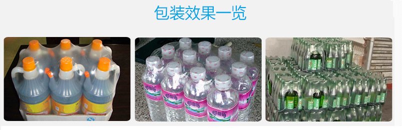 2-1、袖口式热收缩包装机,是我公司自主开发研制的新型包装机。整机均由优质钢材或不锈钢精工制造,结构紧凑合理,经久耐用,节能效果显著。具有自主知识产权的新型收缩膜自动包装机,广泛适用于饮料,食品、医药化工用品等组合包装。不用底托、无需纸箱,无论方形、圆形、扁形均可包装完美,直观效果甚佳,包装成本低廉。本机采用新颖优化设计,采用PLC自动控制,人机界面跟踪,光纤定位准确。次包进入状态,杜绝缺瓶、倒瓶、调节灵活,安全美观。可调热风循环结构,适用现有各种热缩膜(含彩印),薄膜更换快速简便,故障警示,止锁齐全,运行可靠。从而为质量恒定,平稳可靠,长时间连续生产提供了坚实的保证。